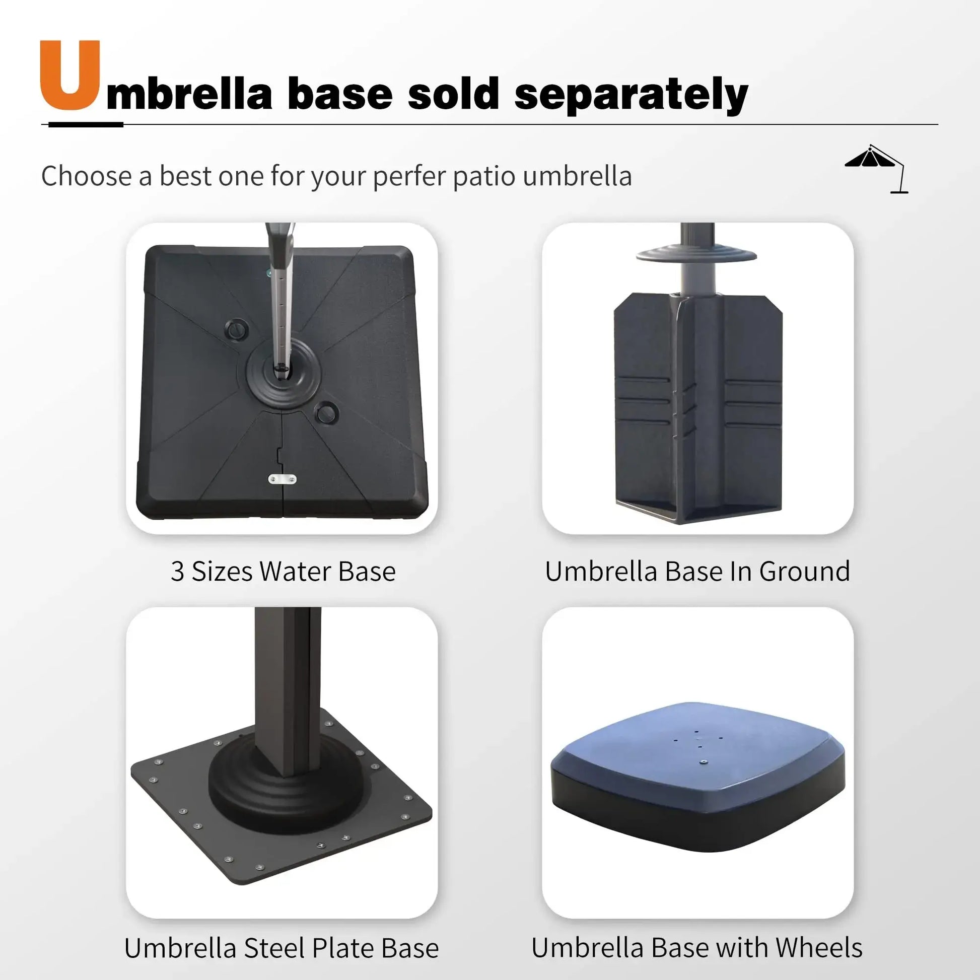 - Umbrella Type: Offset umbrella with crank, vertical tilt, and cross base